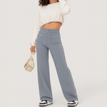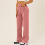 Les boutons spéciaux ajoutent cette petite touche qui fait toute la différence, transformant ce pantalon taille haute élastique en un incontournable chic sans compromis sur le confort.