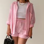 • Coupe : Chemise oversize et short décontracté pour un tombé fluide