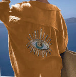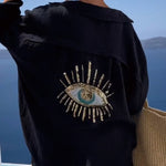 Le motif d'œil en sequins brodés dans le dos ajoute une touche de glamour unique à votre tenue.